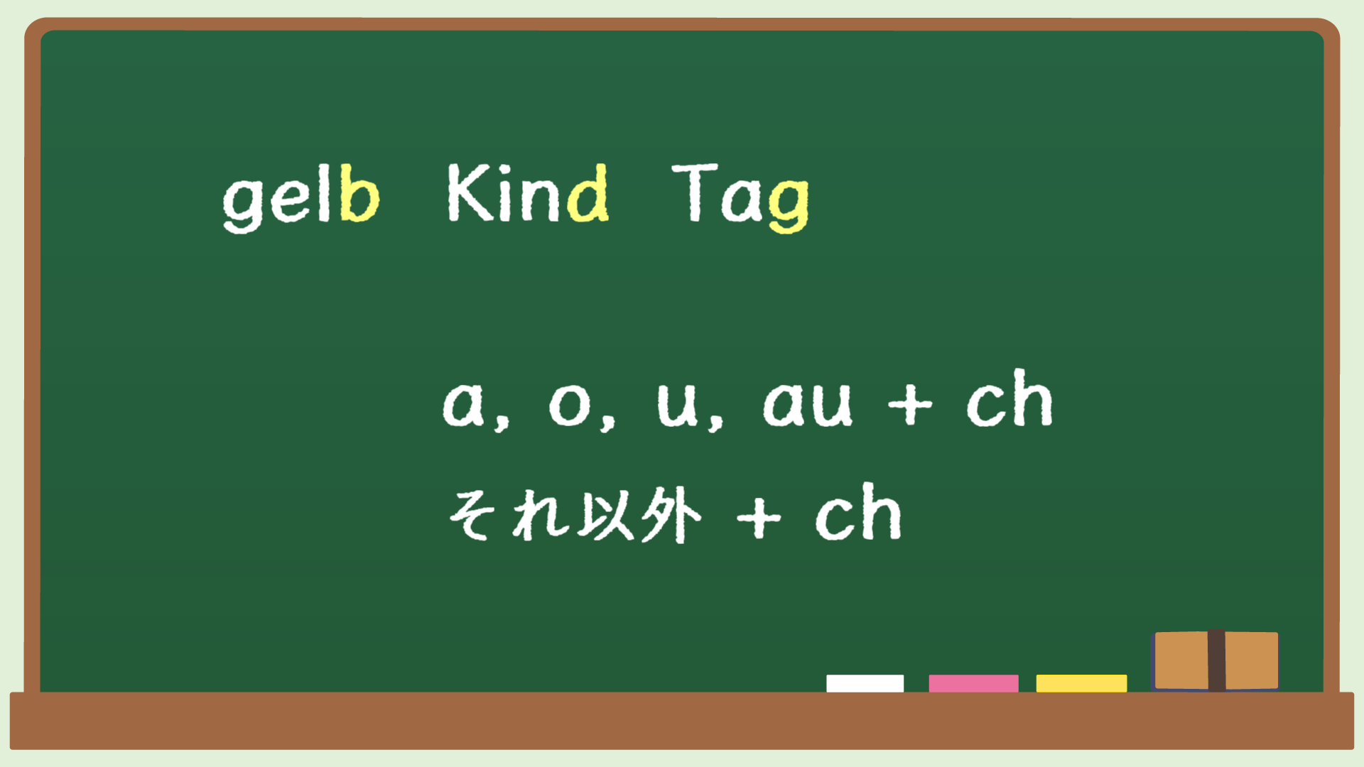 それから、それ以外のchですが、これは、「ひ」と読みます。ちょうど、関東から東の出身の人は、「ひかり」とか「ひきさく」とか言うときの「ひ」です(ich-Laut)。東日本の人は、”hikari”の”i “は、脱落しちゃってるでしょ?”hi-ka-ri“と、母音をはっきり言うと、ちょっと関西の言い方みたいになる。