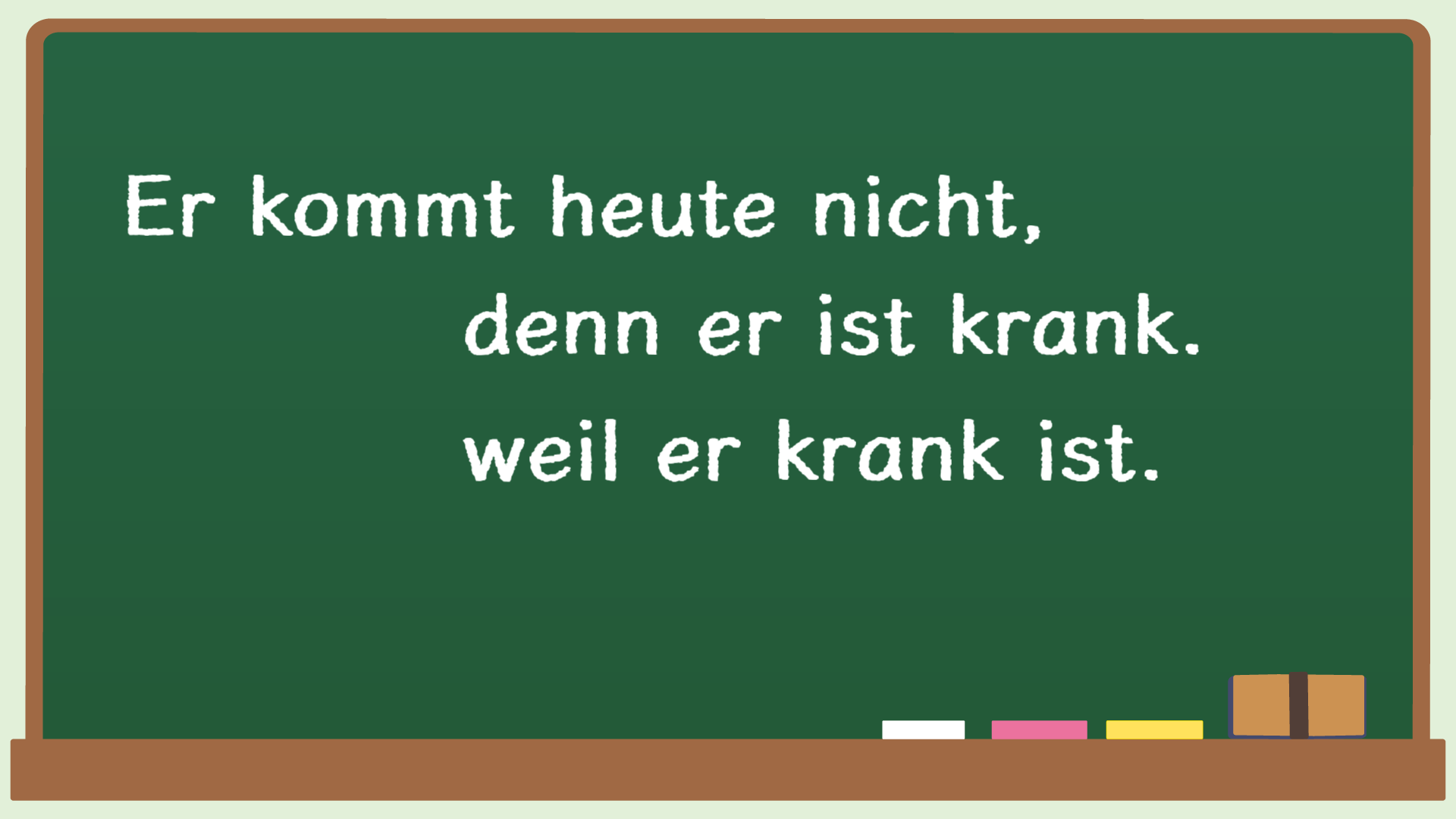 | Er kommt heute nicht, | denn | er | ist | krank. |