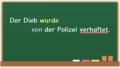 | Er sitzt auf der Bank. |